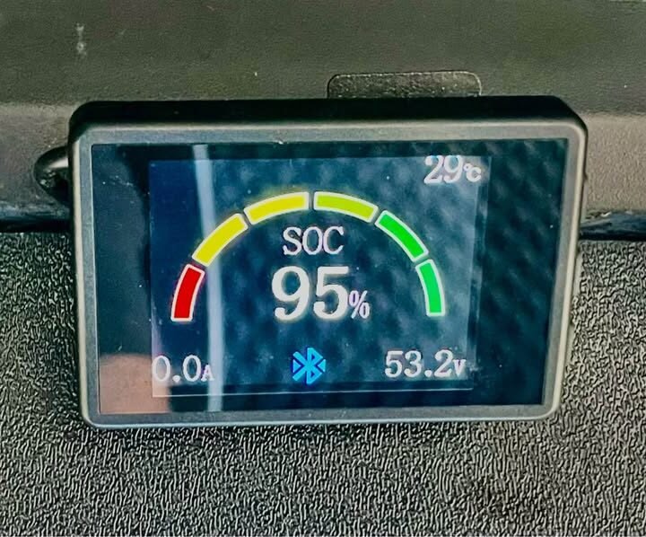 Overhead storage with digital battery display. Onboard charger with 48volt to 12volt converter to run extra accessories.